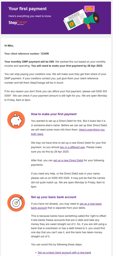 How StepChange redesigned communications to keep clients on track.